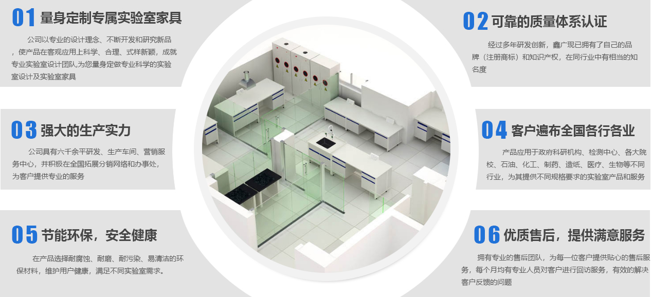 山東鑫廣實驗設(shè)備科技有限公司成立于2007年,是一家位于山東濰坊的實驗室家具工廠。作為實驗室整體解決方案服務商,我們提供從實驗室規(guī)劃、實驗室設(shè)計、實驗室裝修、實驗室工程、實驗室家具、實驗室設(shè)備、到實驗室服務等實驗室建造一站式服務,致力于專業(yè)研發(fā)、設(shè)計、生產(chǎn)實驗室家具等產(chǎn)品及相關(guān)配套設(shè)備,并提供實驗室建設(shè)全套解決方案的新型高科技企業(yè)。公司下設(shè)研發(fā)加工工廠、營銷服務中心,并積極在全國拓展分銷網(wǎng)絡和辦事處,為客戶提供更專業(yè)、優(yōu)良的產(chǎn)品和服務。